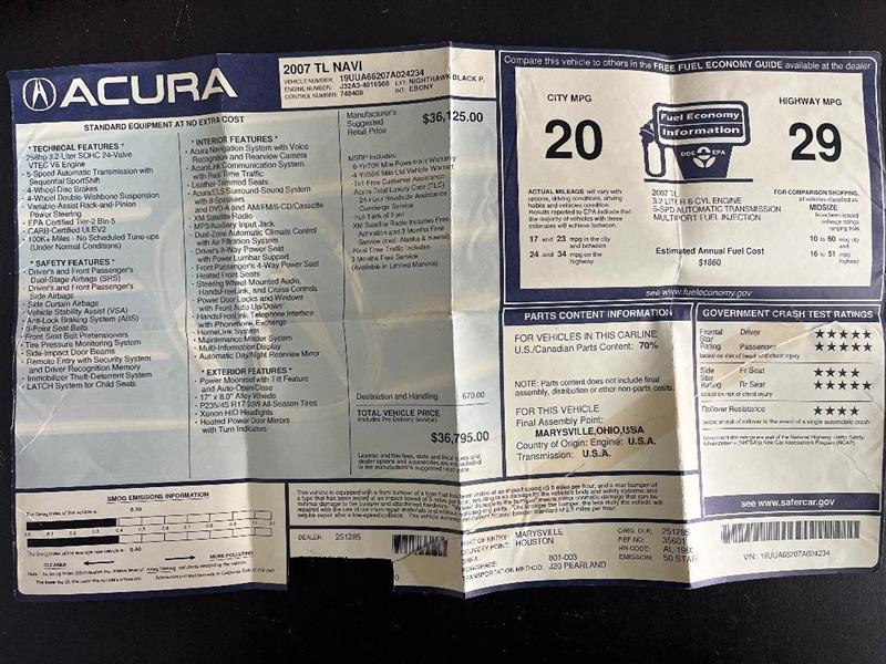 FINANCING AVAILABLE**EXTREMELY LOW MILES** 2007 ACURA TL W/NAVIGATION, BLACK EXTERIOR, BLACK INTERIOR, LOADED WITH BACK UP CAMERA, NAVIGATION, SUNROOF, LEATHER HEATED SEATS, XENON HID HEADLIGHTS, KEYLESS ENTRY, COLD AC, PREMIUM SOUND SYSTEM, XM RADIO, DRIVES VERY SMOOTH, WELL MAINTAINED, DRIVES VERY SMOOTH, PREVIOUS TX AND NC VEHICLE, powerful 3.2L SOHC PGM-FI 24-VALVE VTEC V6 engine and driven only 68230 miles! CONTACT US TODAY AT 540-891-7000 OR TEXT AT 571-645-4633 FOR AVAILABILITY AND TO SCHEDULE A TEST DRIVE. FOR MORE INFORMATION, PLEASE VISIT OUR WEBSITE AT WWW.PHANTOMAUTOGROUP1.COM. WE OFFER NATIONWIDE SHIPPING